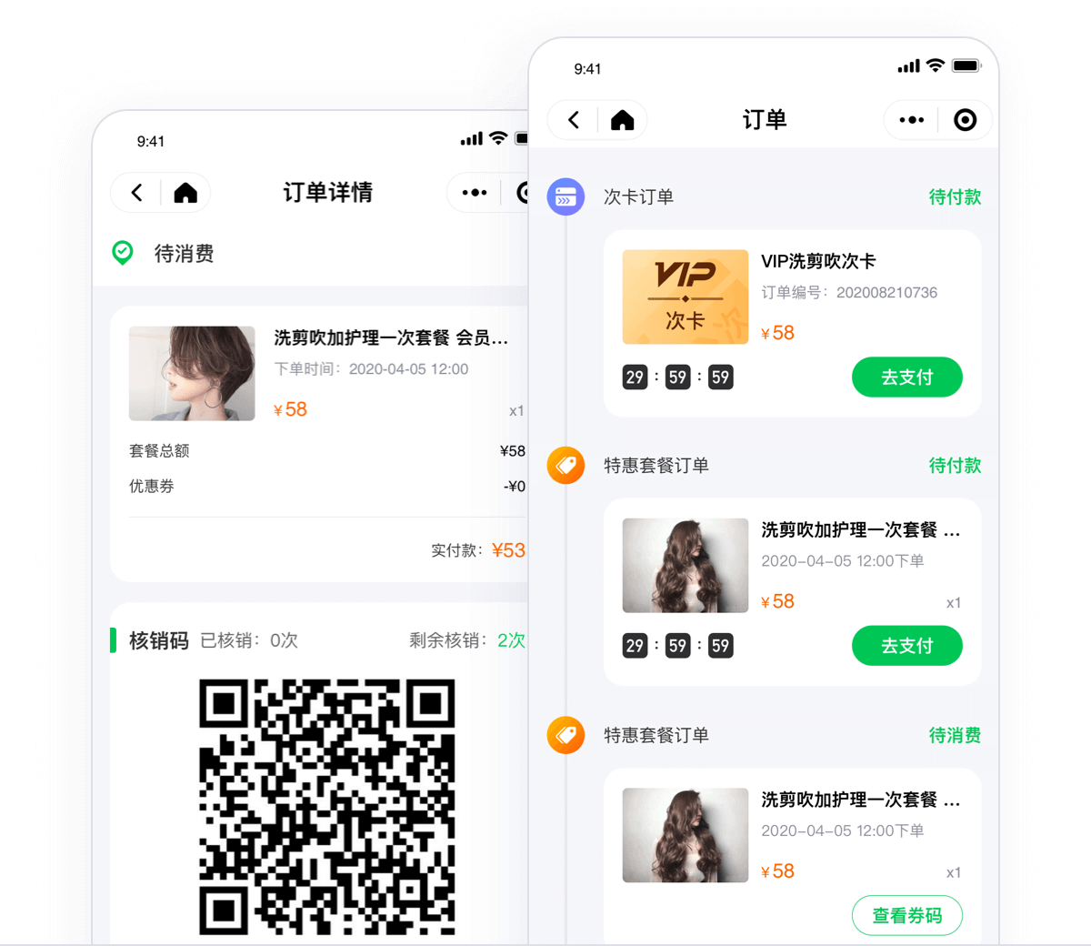 订单消费:出示会员码或订单核销码给商家进行核销。